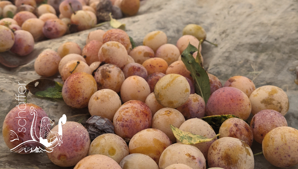 Aus Fränkischen Mirabellen. Gewachsen auf naturbelassenen Streuobstwiesen, direkt in den Mainauen rund um Escherndorf - von Hand gelesen und sortiert.