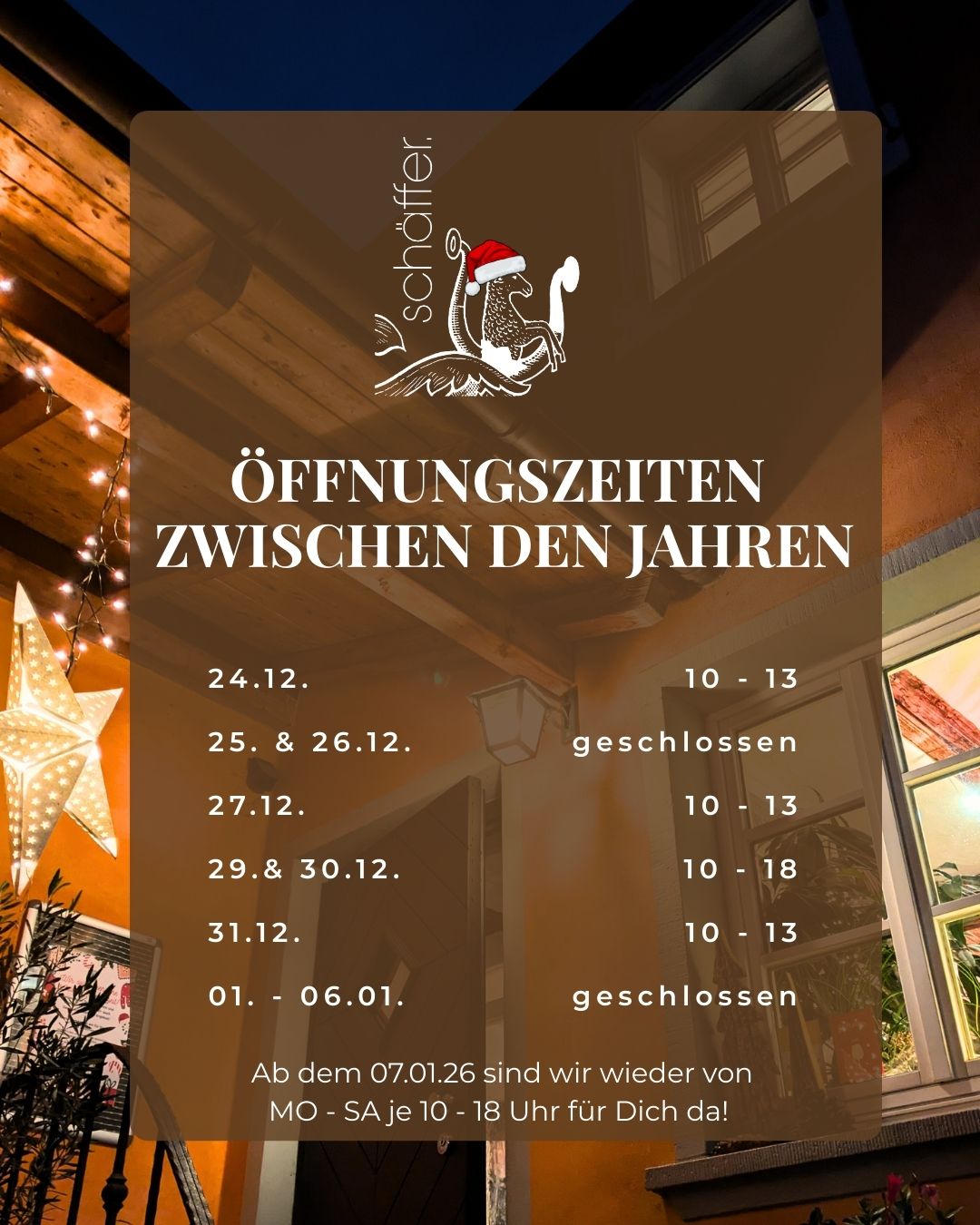 Öffnungszeiten zwischen den Jahren